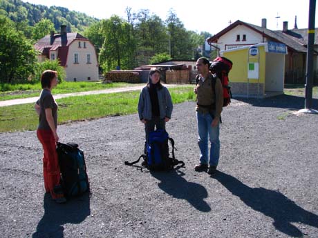 Čekáme na motorák na zastávce, která ještě před rokem byla naprosto úplně opuštěná a bez života.