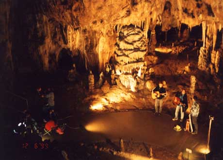Další bláznivý nápad, který jsme kdysi pojali. Fotka je dost nekvalitní, ale vystihuje atmosféru. Písničky máme rádi - a tahle akce se konala ve Sloupsko-Šošůvských jeskyních Moravského krasu.