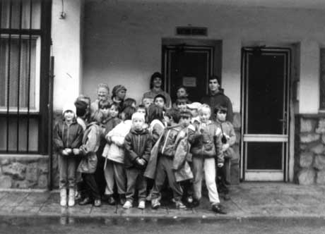 1990 První sestava Tuláků (vzadu vlevo vedoucí Bára, Alena (a vpravo Pepa))