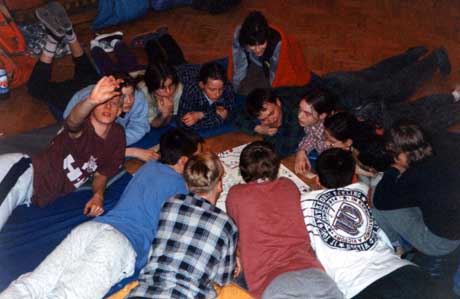 1996 Výprava... Nevíte někdo, kam? (Já tu nemám CD a nemůžu si vzpomenout). Vpravo v kostkované košili vedle Boxera leží Pavla.