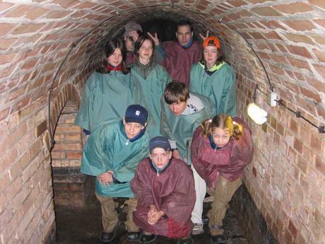 2002 Tuláci ve Slavonickém podzemí. Vzadu seniorky Plucka, Jitka, Plenka. Před nimi Přemek, Kuba, Štěpán a Eva Šp.