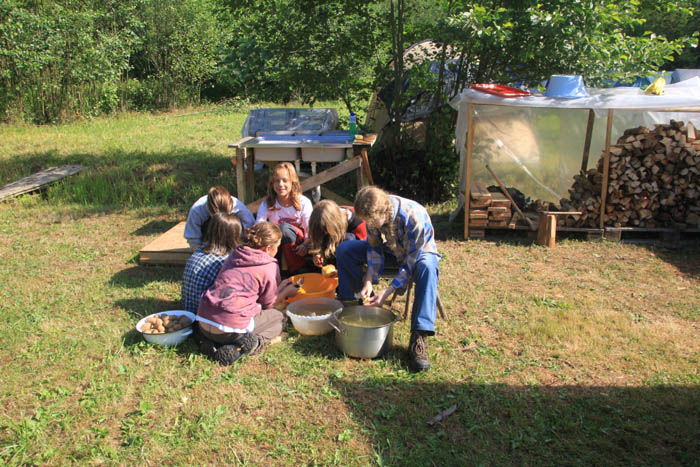 Běžný život táborníka - i indiána - vyžaduje také běžné práce. Škrabky se osvědčily!