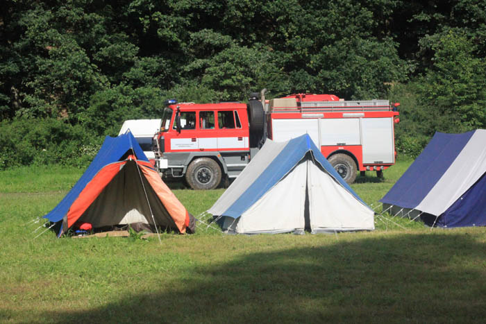 Další den a hasiči přijeli kontrolovat tábory.