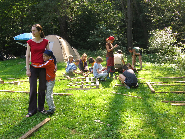 Stavíme čluny, abychom mohli jet prozkoumat ostrov, ke kterému jsme připluli.