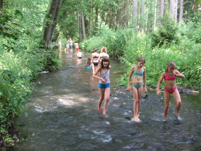 První koupání v tůni.
