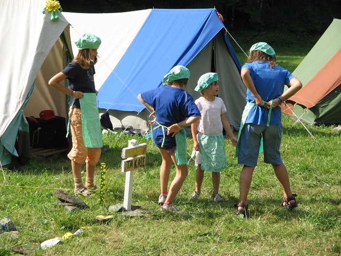 Rodiny hrají scénku z historie rodu.