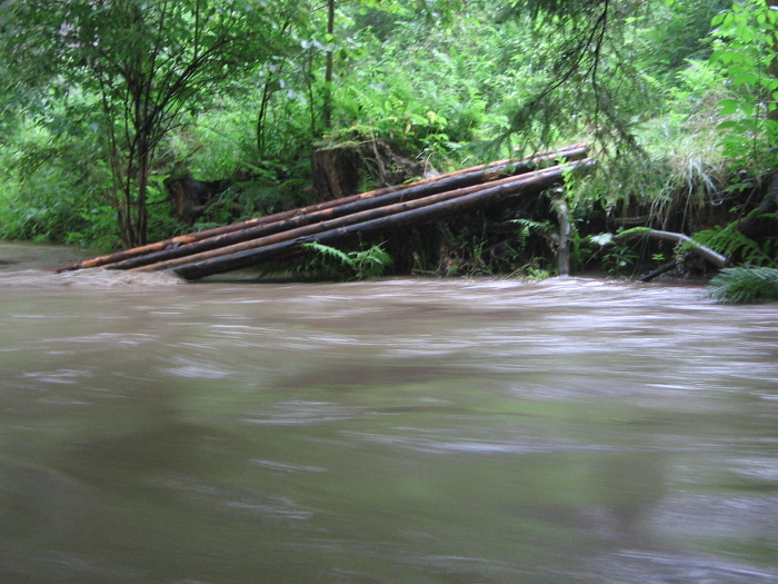 Po deštích se zvedla voda, nakonec lávku odnesla.